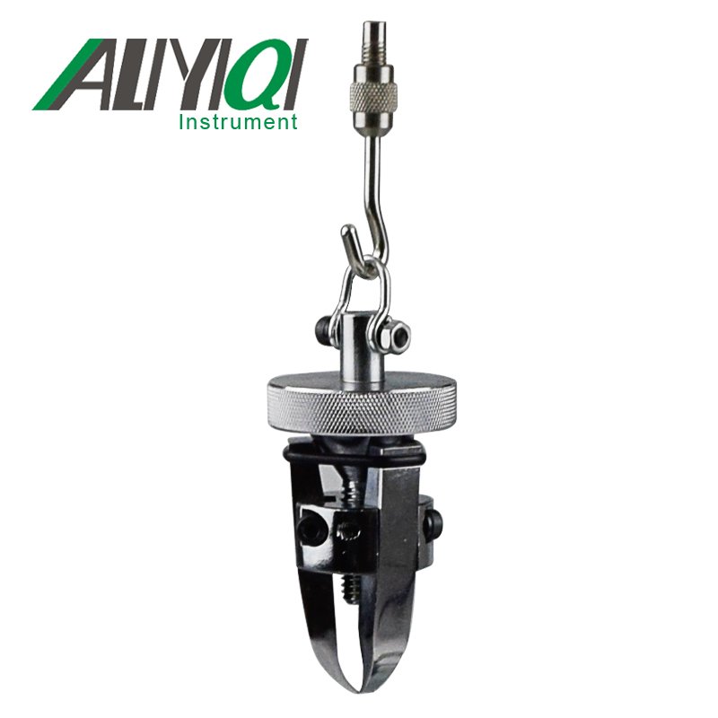將上夾具用附件中具有內螺紋連接鉤,安裝于推拉力計的測試桿上。