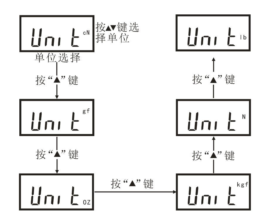1.2.2 cN、gf、OZ、Kgf、N、lb六種單位可設定。