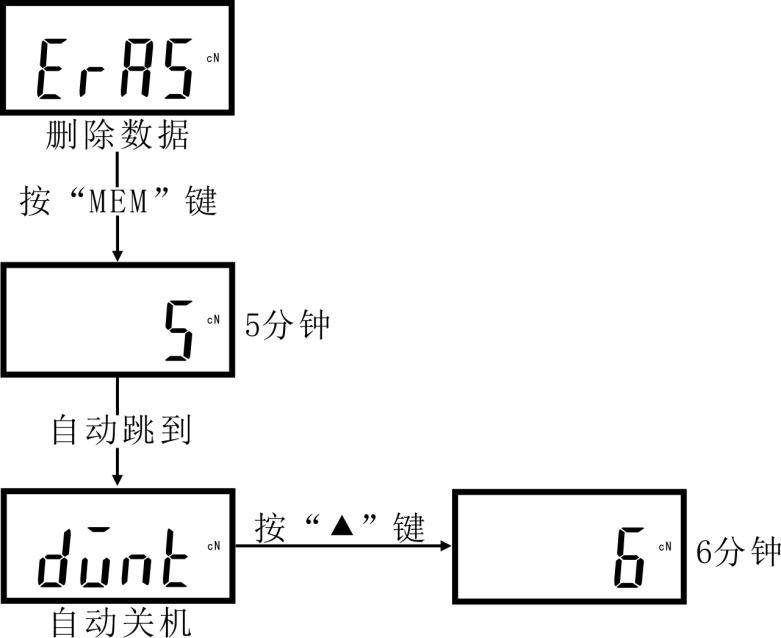 可設置0-15分鐘儀器無操作自動關機,“0”為不自動關機,按“ ”鍵選擇自動關機時間即可。