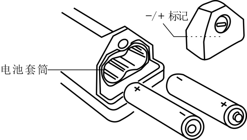 5.2 把2節5號3.7V的鋰電池放入電池套筒,按電池蓋內部電池正負極指示插入電池。