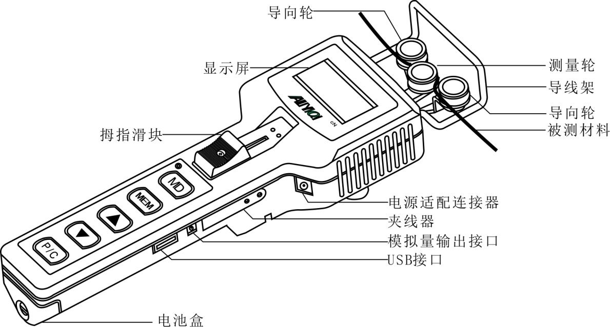 6.1當我們使用“3滾筒”原理張力測量法時,即使線形張力不變,材料直徑的增加也會導致張力讀數的增加。本儀器的專用厚度調整器系統可自動轉換為外部滾筒來補償這種影響。厚度調整器測量直徑可精確到0.01mm,可作為電腦校準公式的因素。